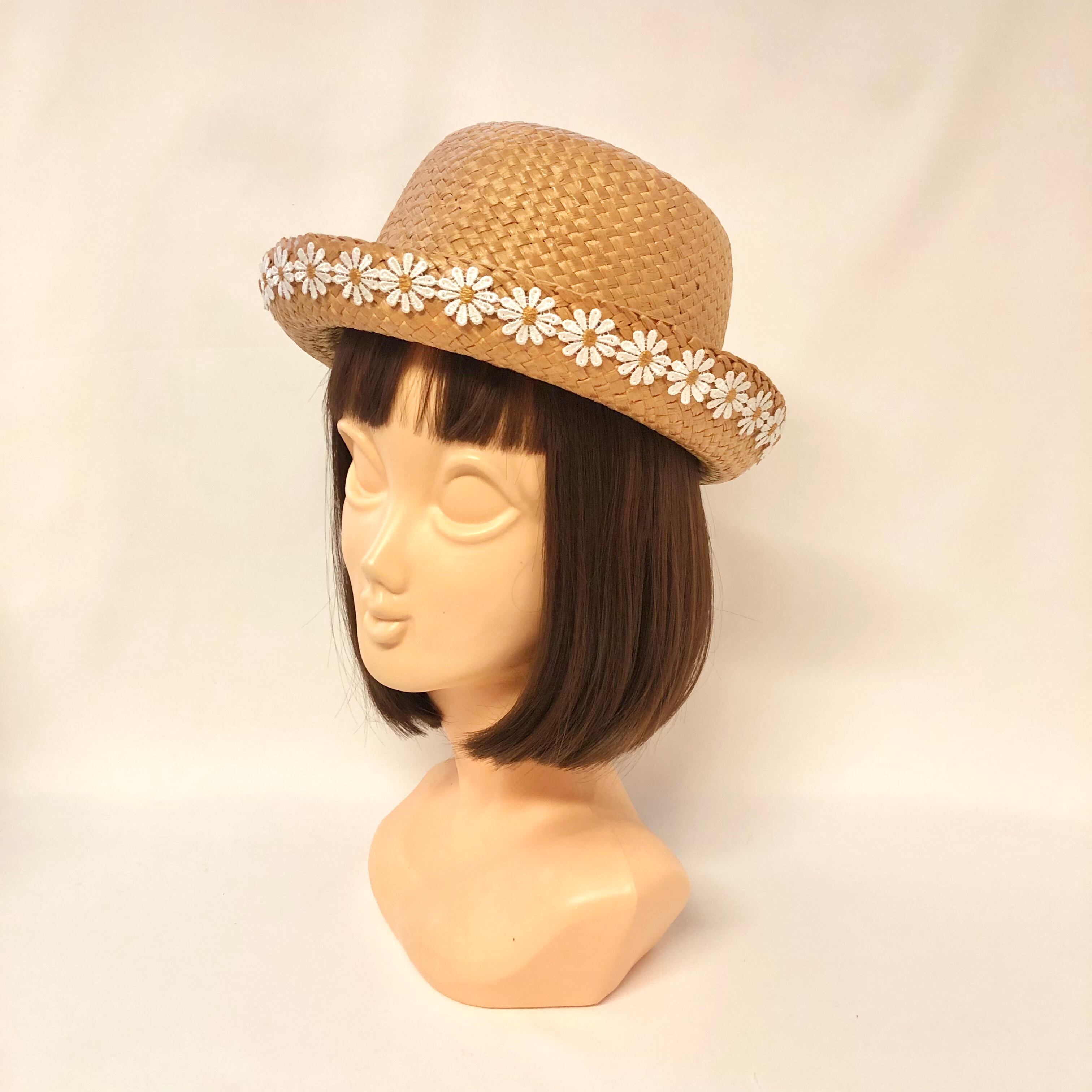 ナチュラルカラーの軽やかな天然草を使用したセーラーハット。 くるんと上がったセーラーブリムにフラワーレースをあしらいました。 夏らしいキュートな一点です* 素材・天然草、他 高さ 約12.5cm、サイズ 約57cm