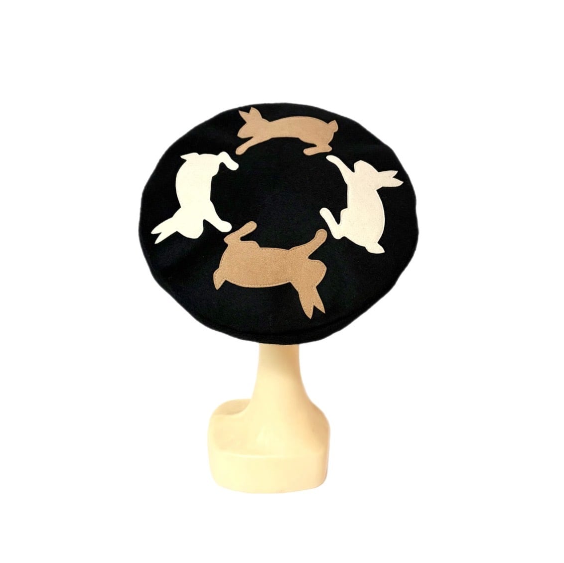 こちらは黒のベレーにベージュとオフホワイトのうさぎちゃん。