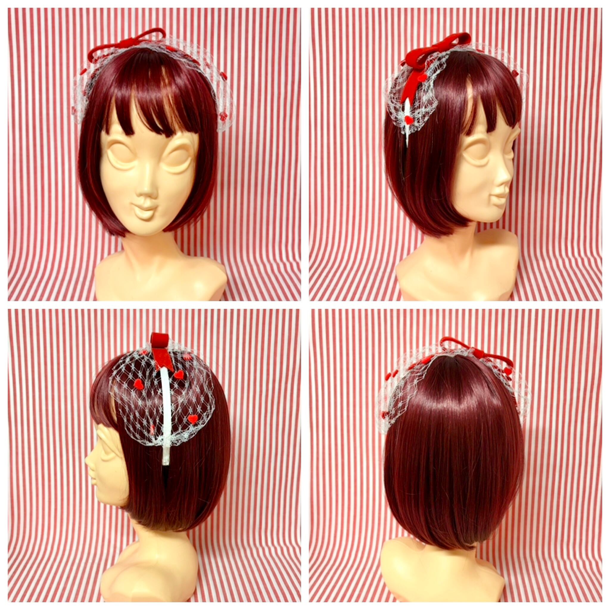 やや小さめの控えめリボン。チュールに散りばめた小さなハートがとびきりキュート♡