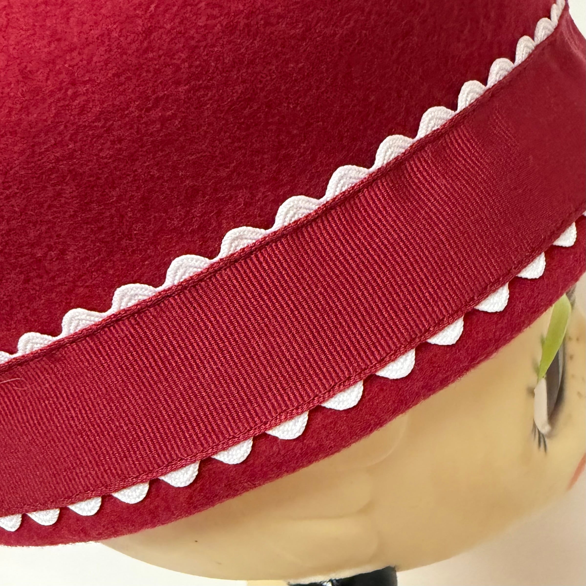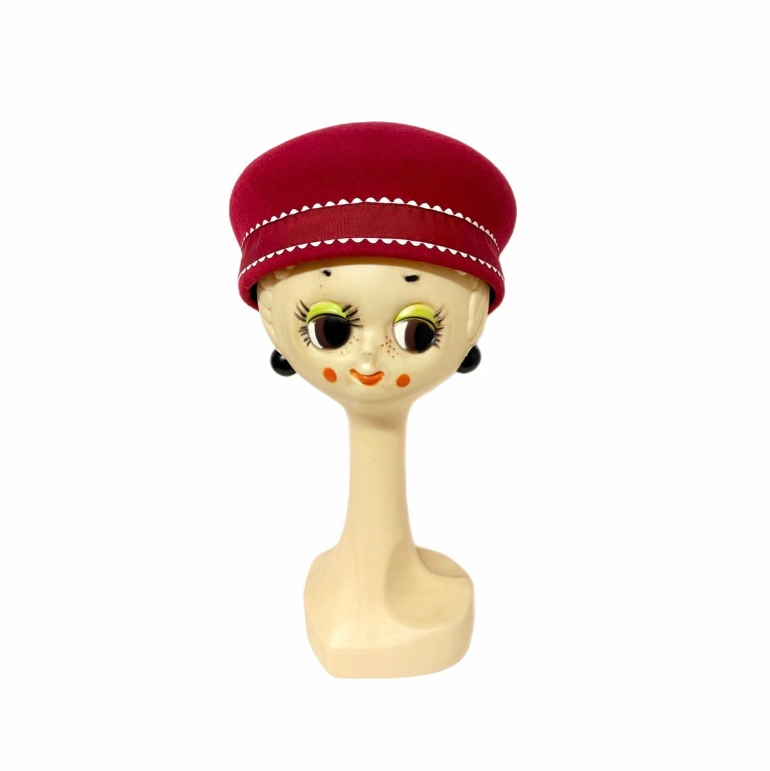 ラズベリーみたいな色味のフェルトを使用したコロンとしたシルエットが可愛い型入れのベレー帽。
