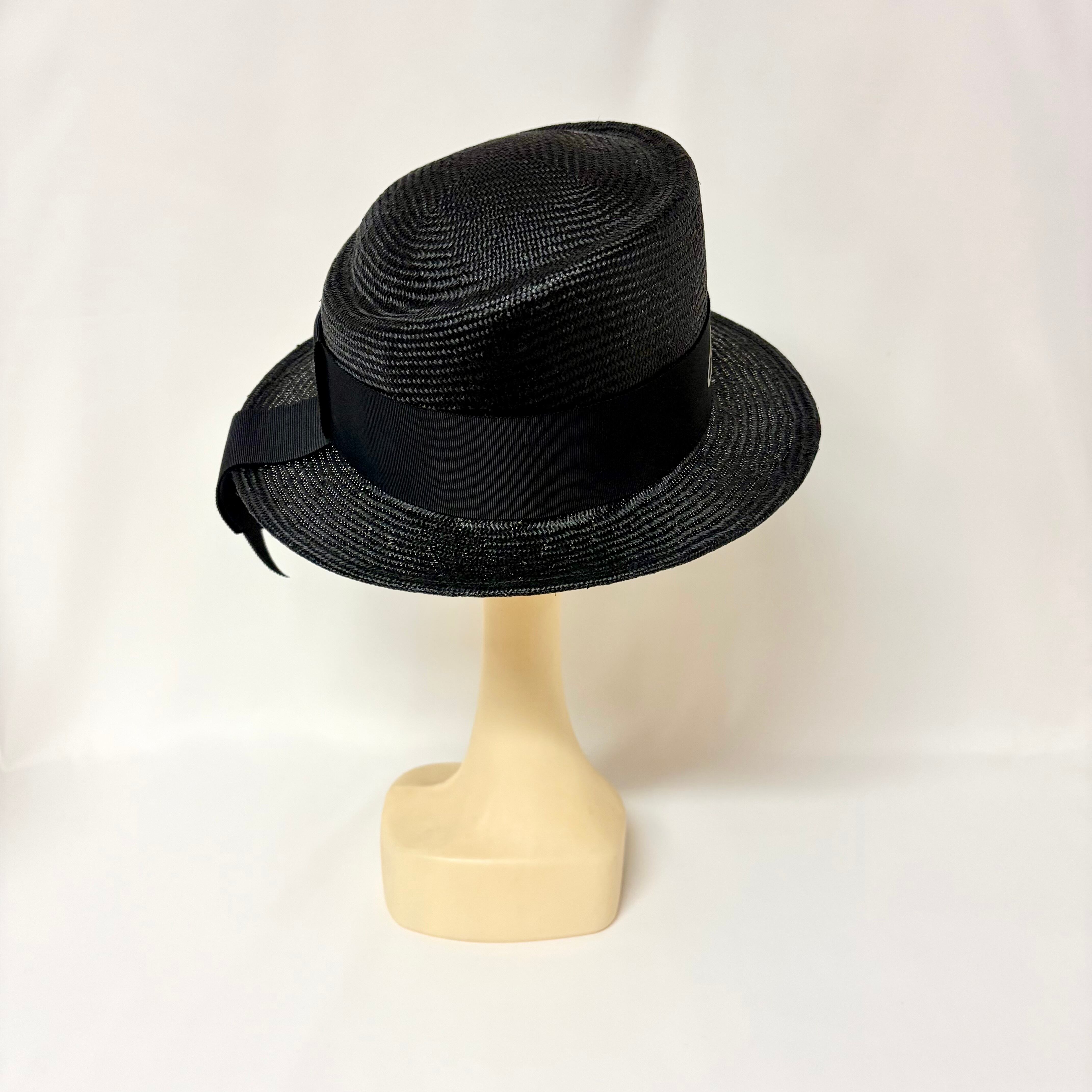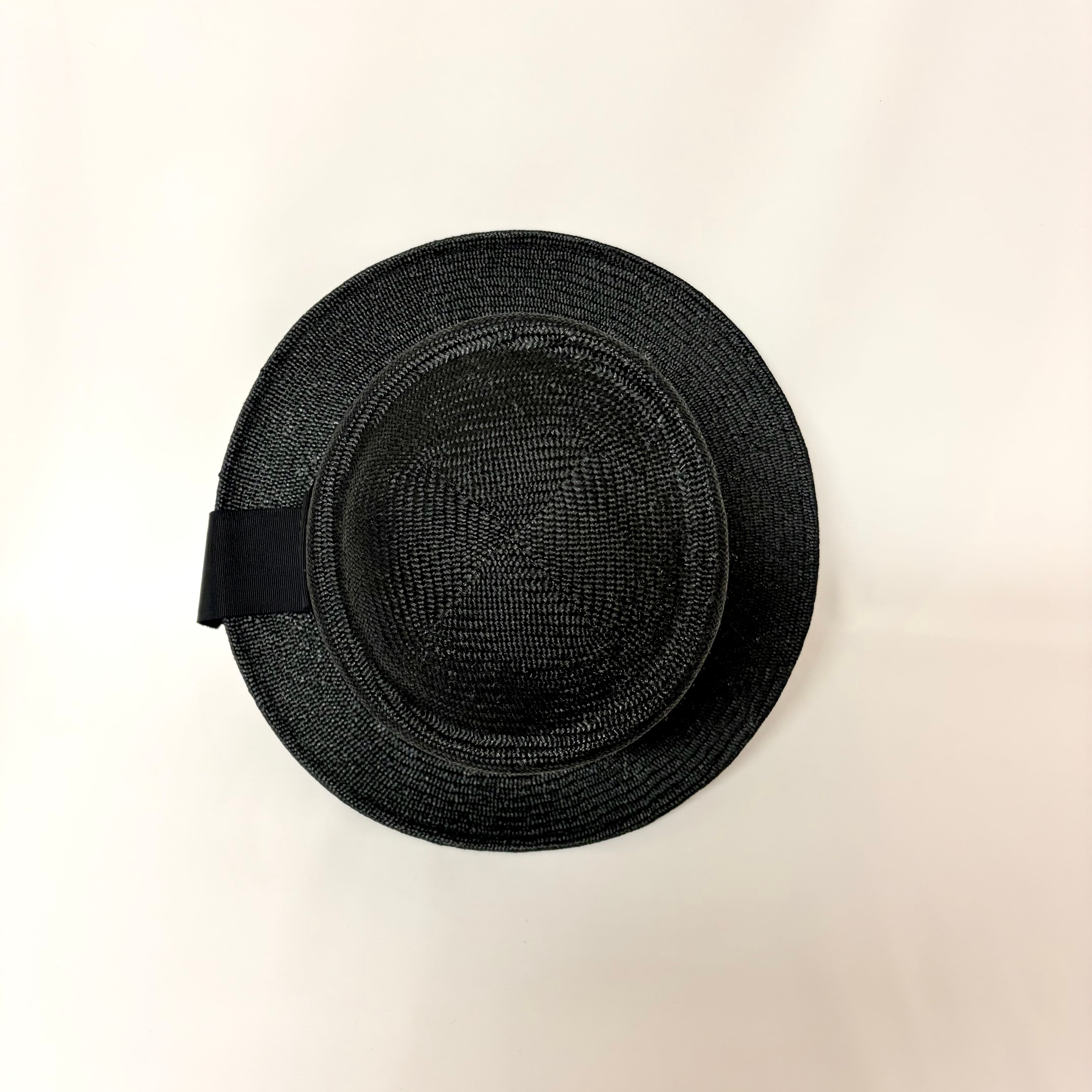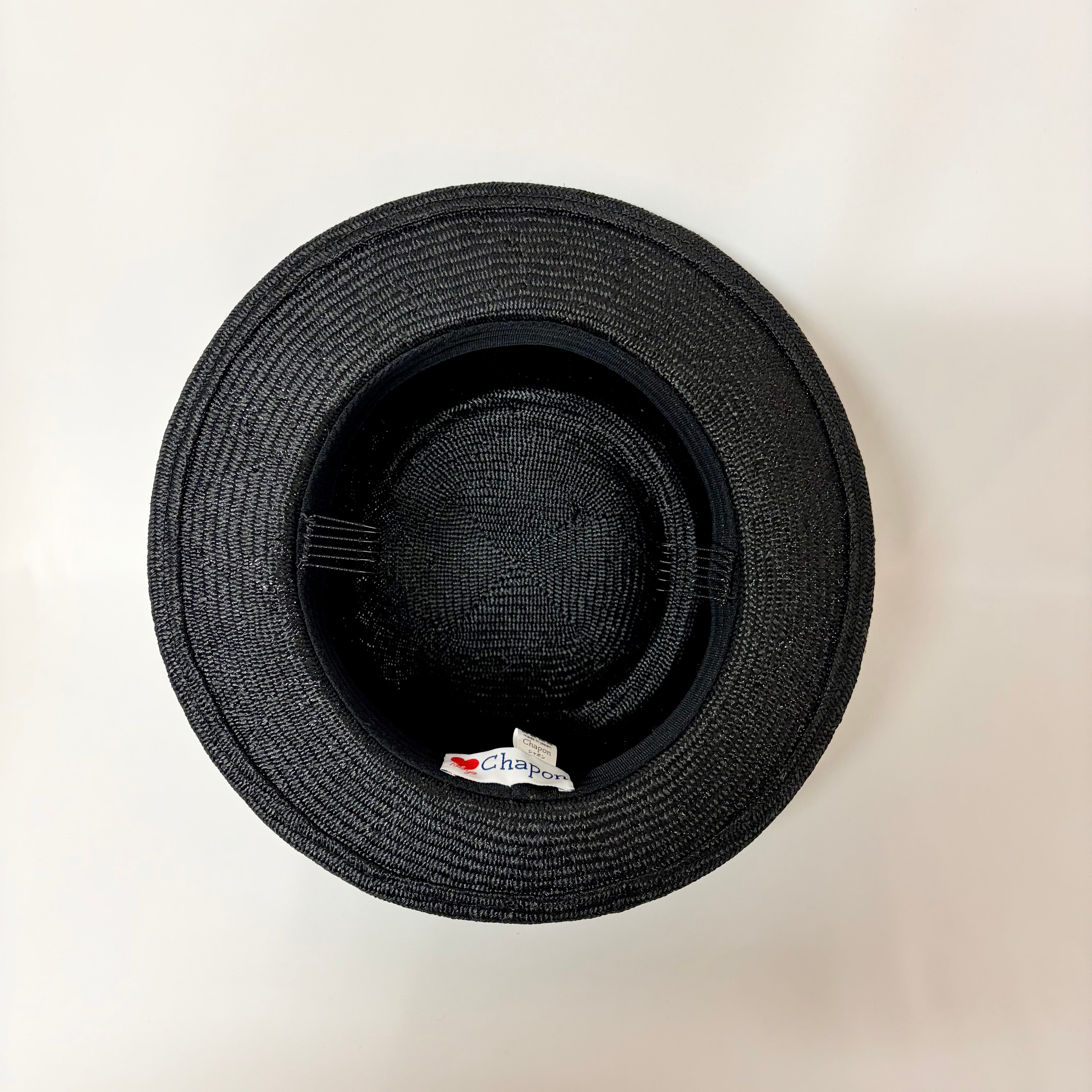 左右の高さがアシンメトリーになったユニークなシルエットのクラウンと、片側にはChaponロゴ、もう片側には長めに残したリボン、見る角度によっていろんな表情が楽しめる唯一無二な一点です。