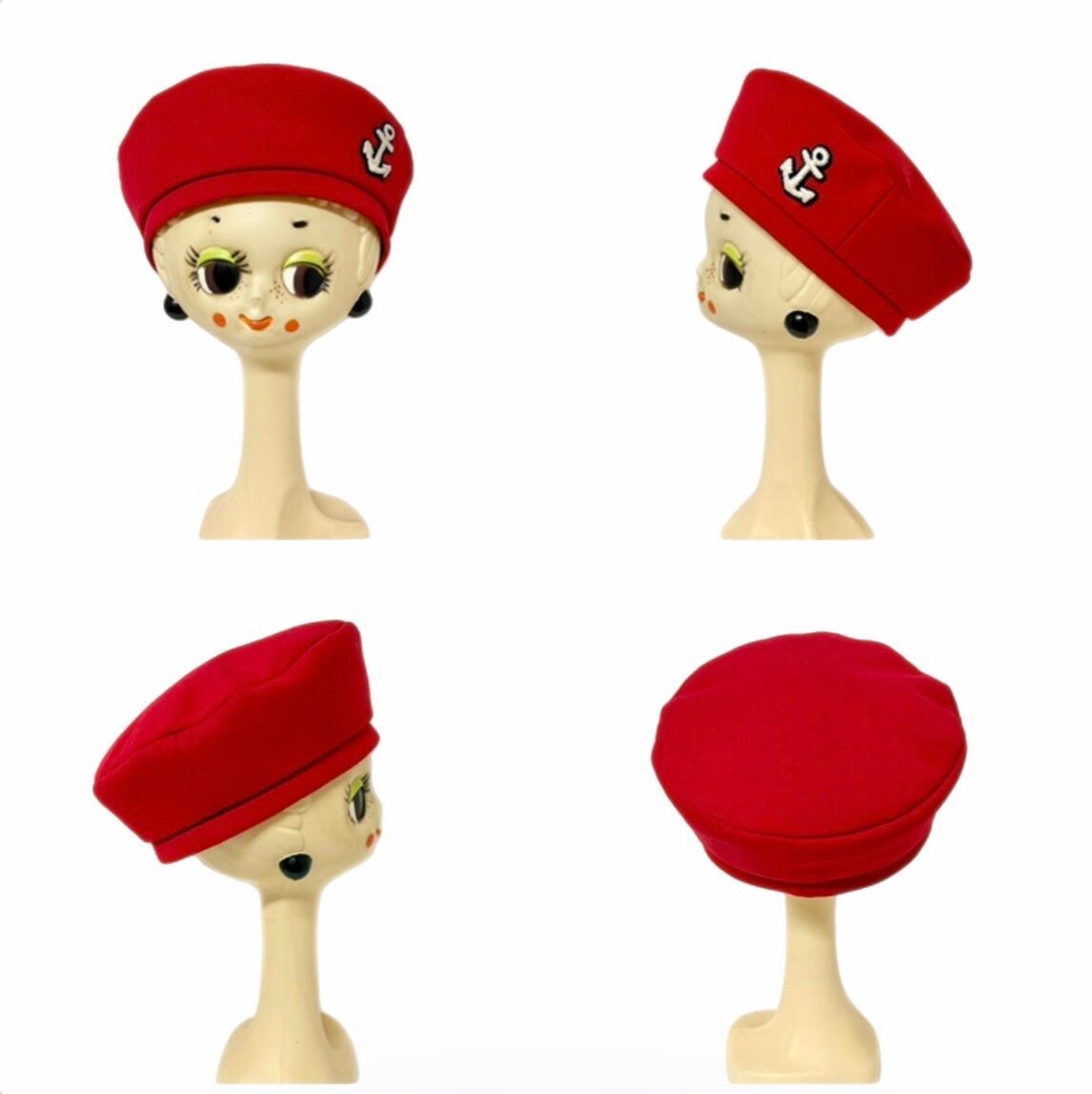 モコモコした糸で手刺繍で作ったオリジナルのイカリワッペンがアクセントになったベレー帽。