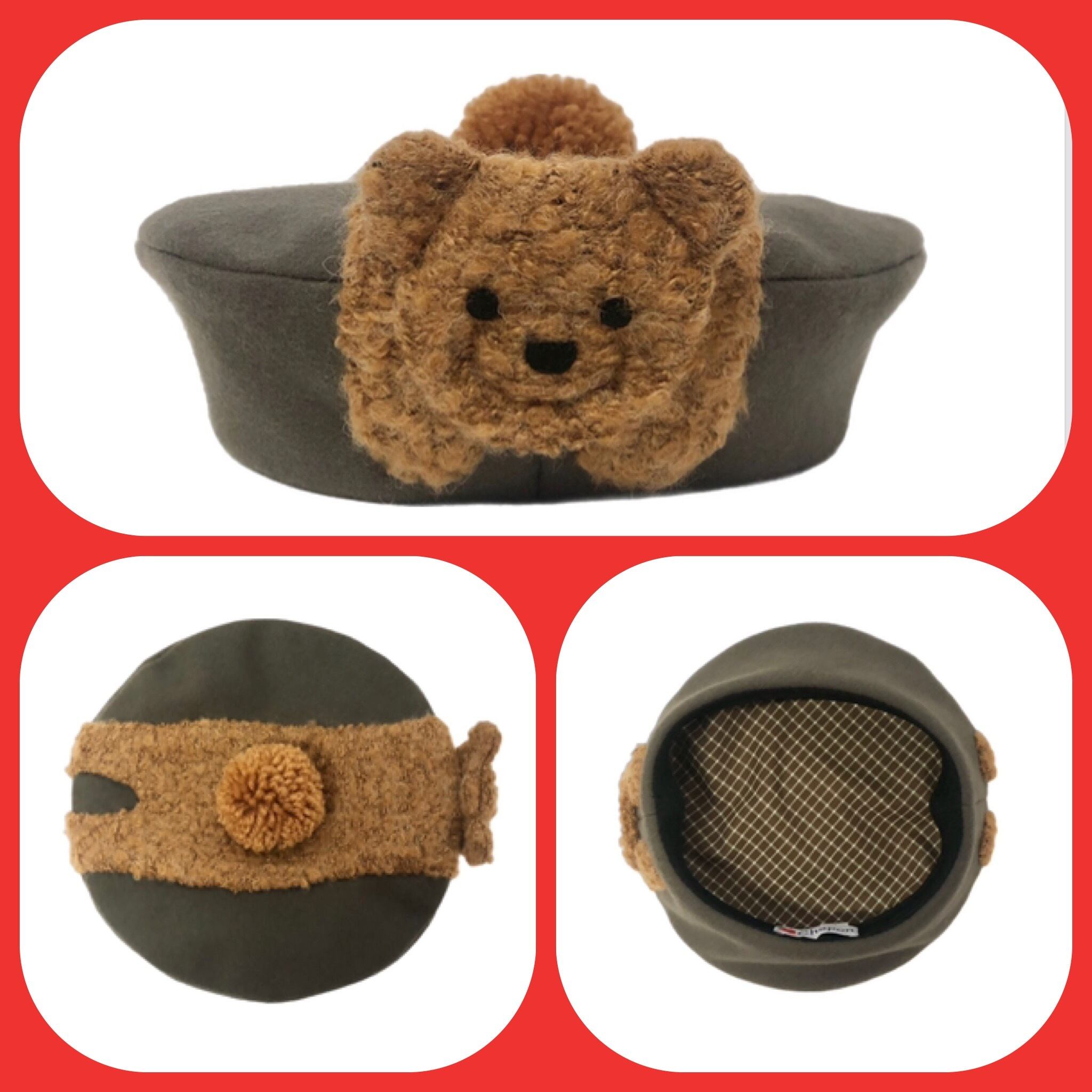シンプルで被りやすい形のウールのベレーにくまちゃんが乗っかった唯一無二の可愛いさです♡