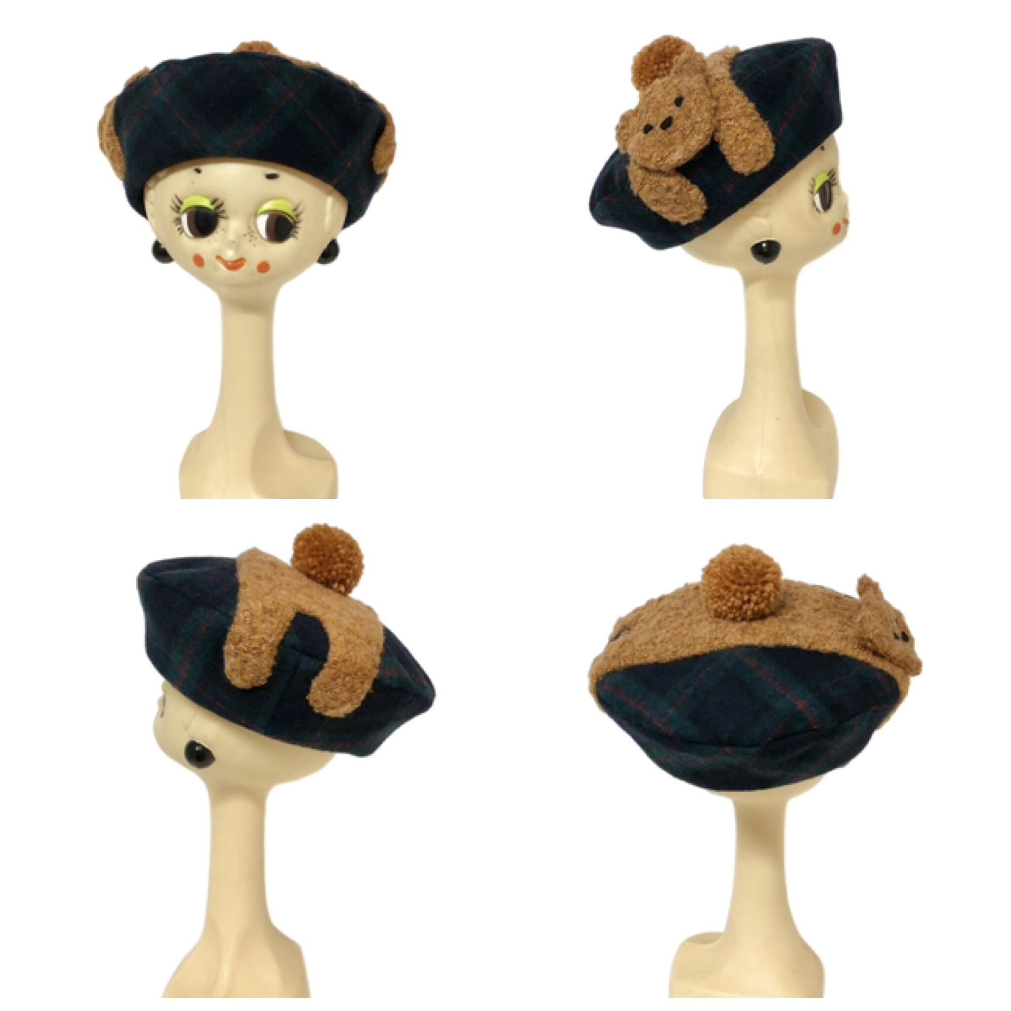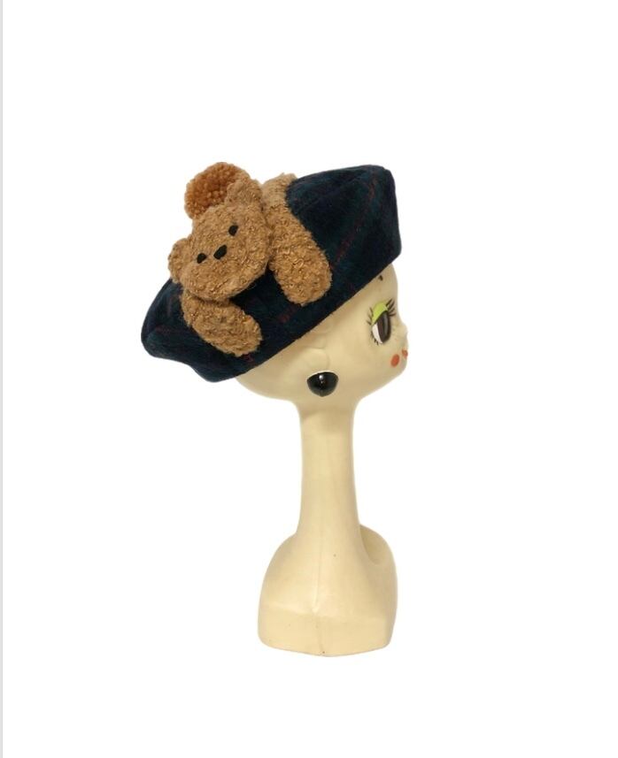 シンプルで被りやすい形のウールのベレーにくまちゃんが乗っかった唯一無二の可愛いさです♡