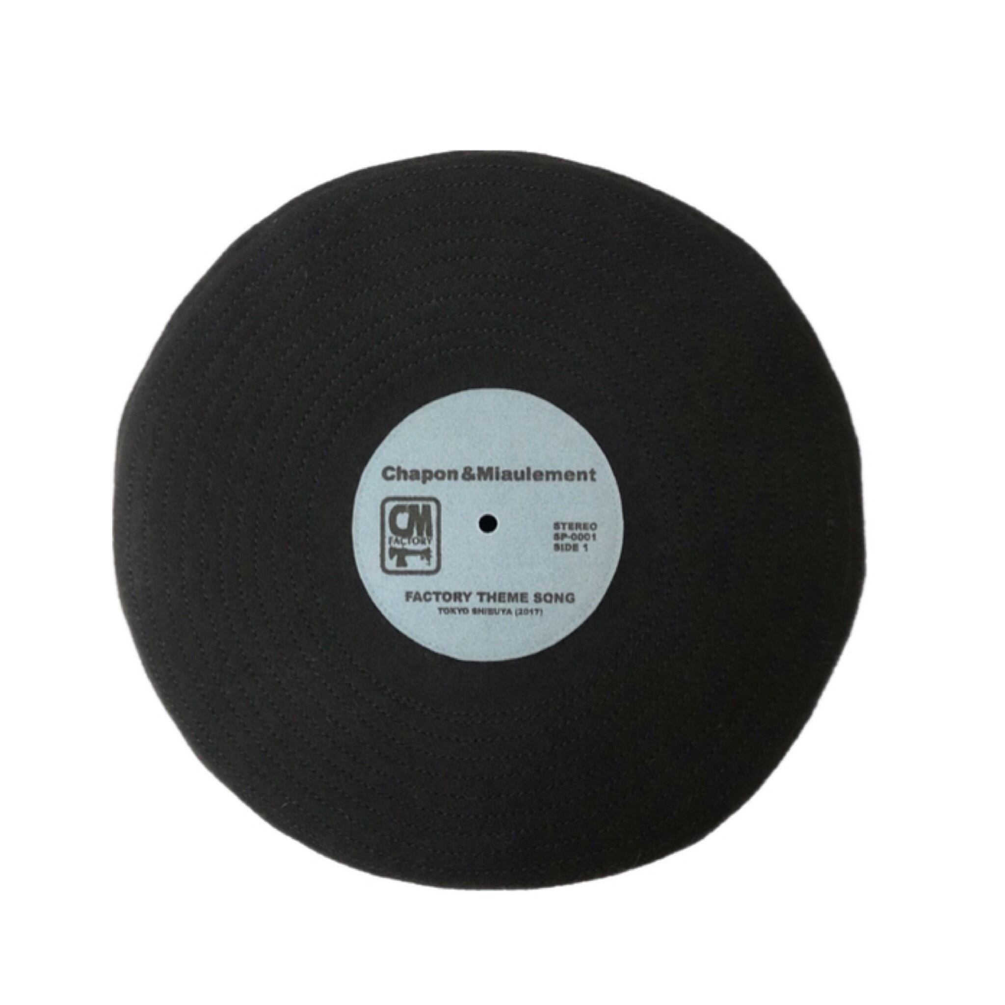 写真だと分かりづらいですが盤面にはクルクルと細かくステッチを入れ、ラベルの中心は生地を抜いて(裏地だけあります)リアルなレコードを追求しています。
